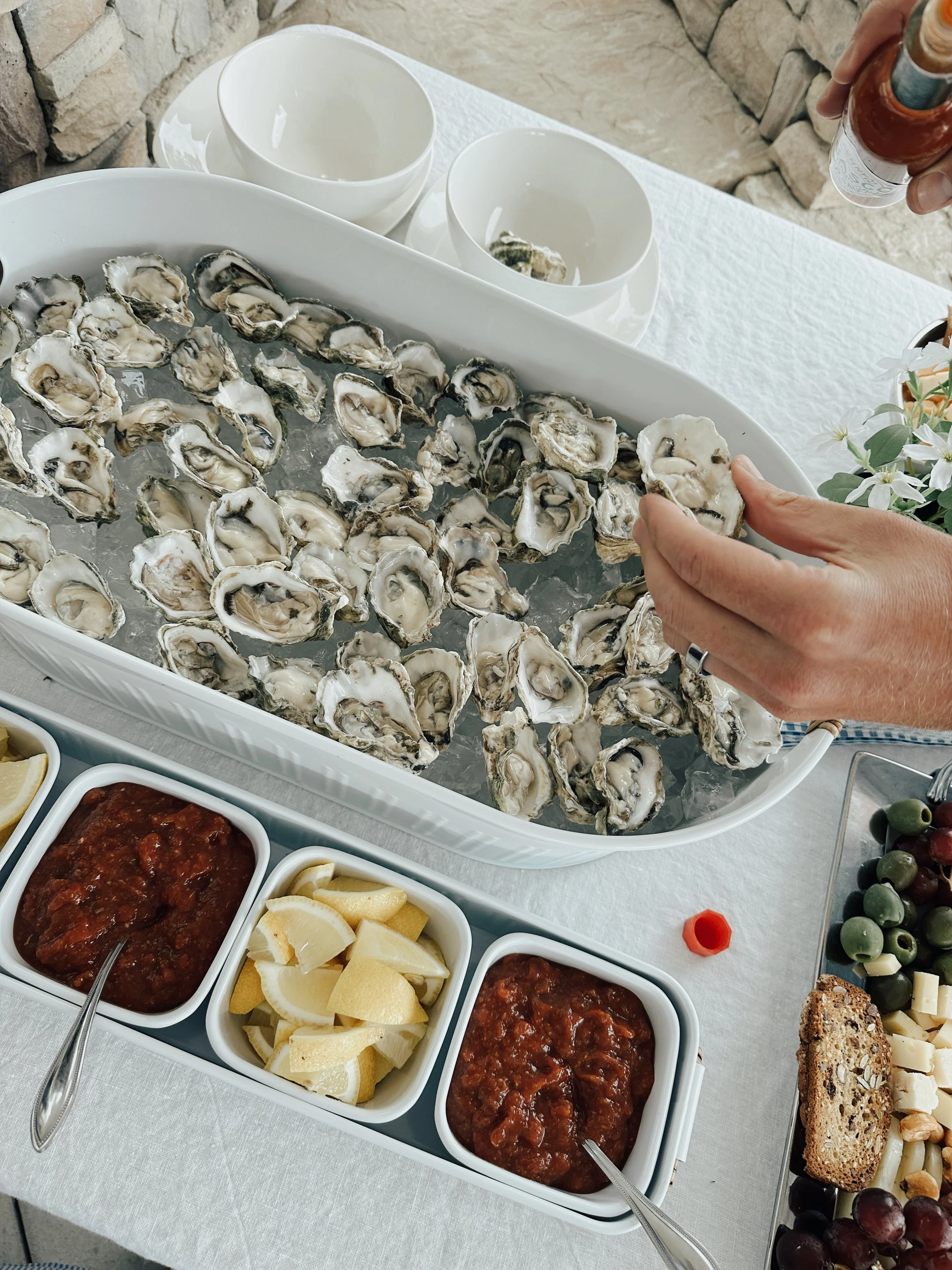 Oysters Shucking Bar, served with fun accouterments.