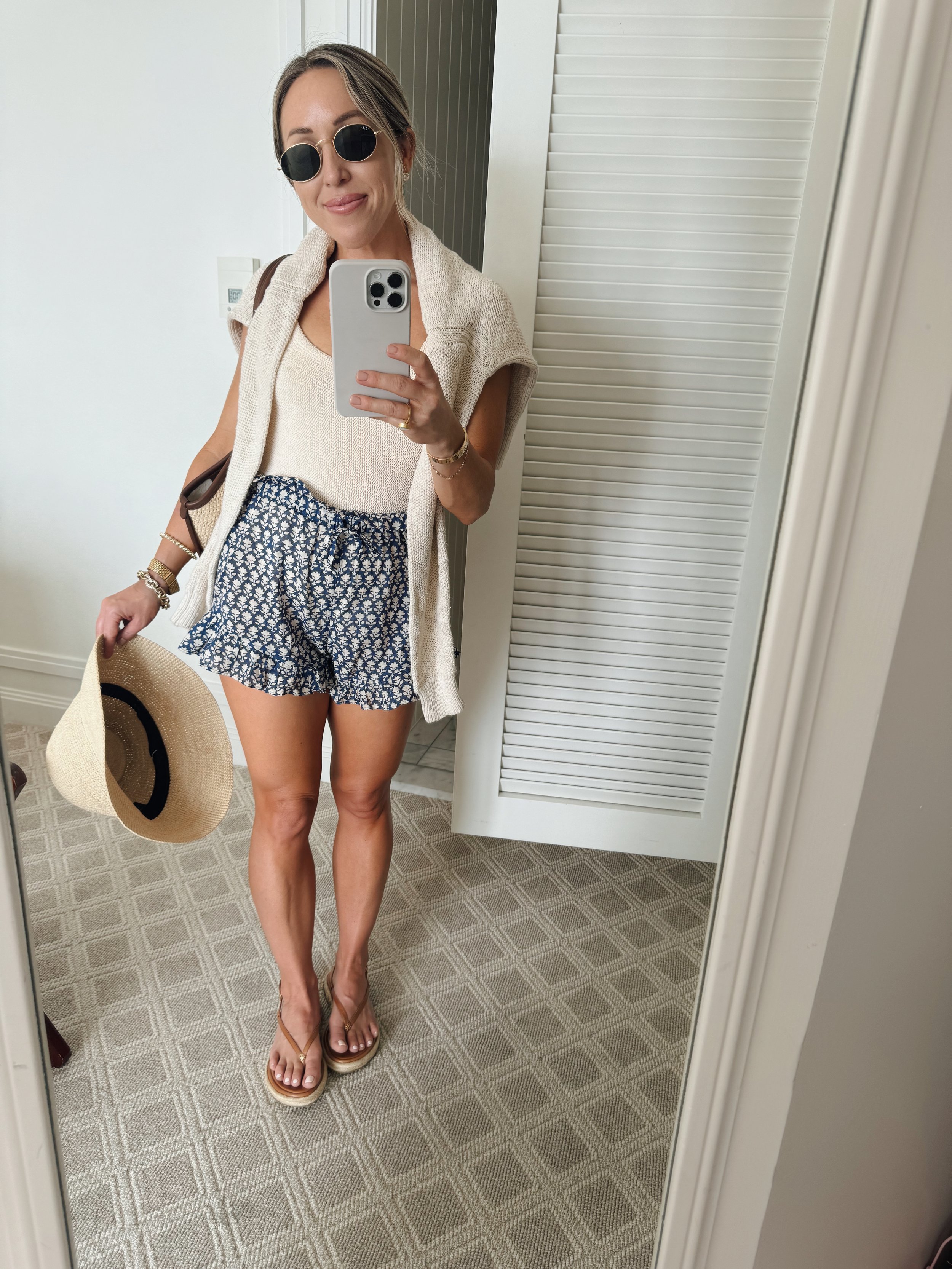 I adore a neutral capsule wardrobe for its versatility and ease of packing light. These black shorts from Posse, I can wear them over a swimsuit or there is a matchy bow top. The styling options are endless. Love this black swimsuit from TOTEME.