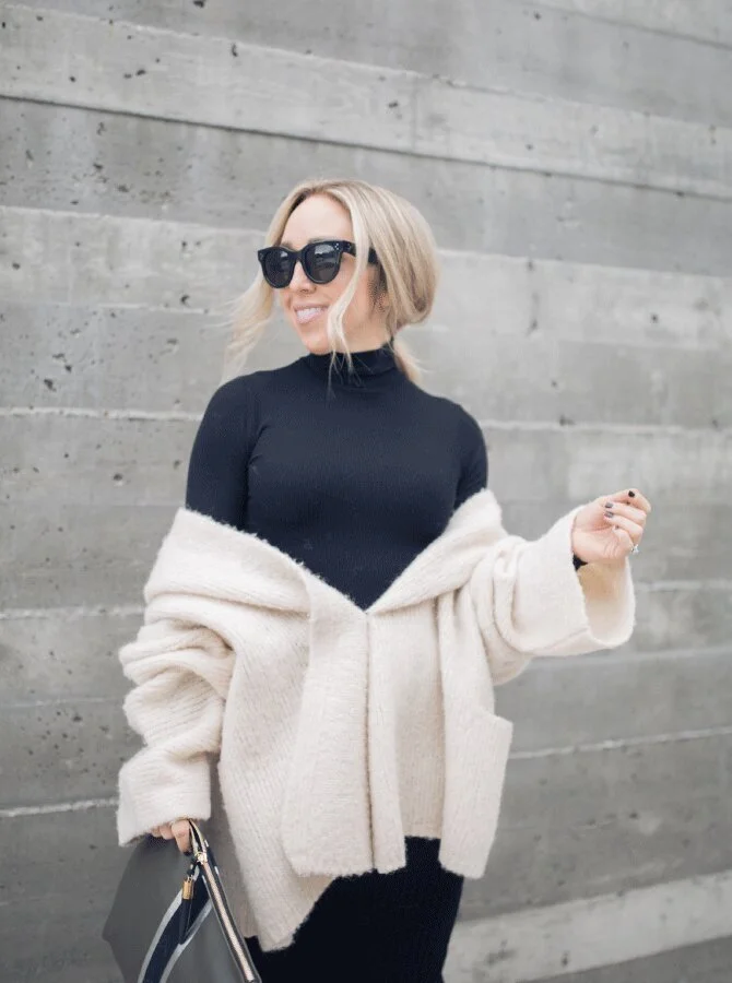 Layer your date night outfit with a cozy wrap, sweater, and a jacket. The more layers the better for me. I am usually cold when I’m at the restaruant, so this wrap sweater is perfect. I could actually wear this sweater every day! The brand is Doffer Boys, one of the highest quality items that I have tried!