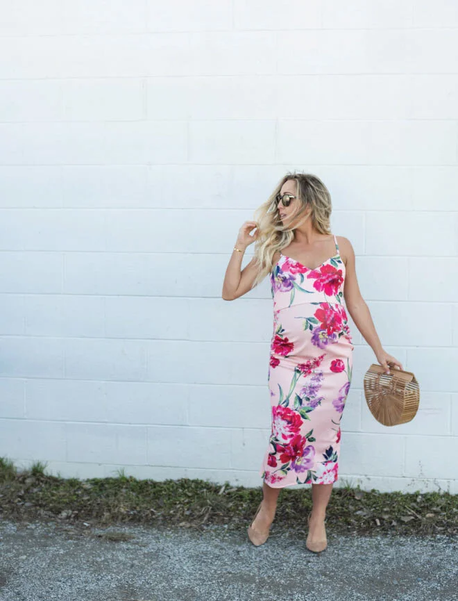 One of the first places I looked for some new maternity essentials is ASOS. I love all their maternity clothes, plus they are a very reasonable price. Therefore, I do not feel bad making a few purchases to get me through this pregnancy. This dress is perfect for spring, summer, and summer weddings.