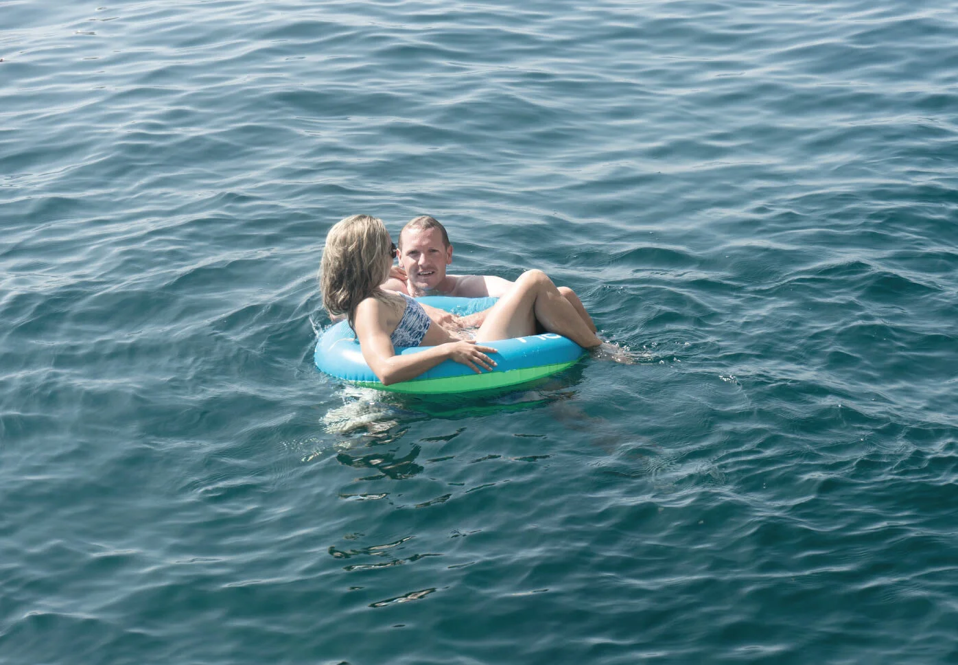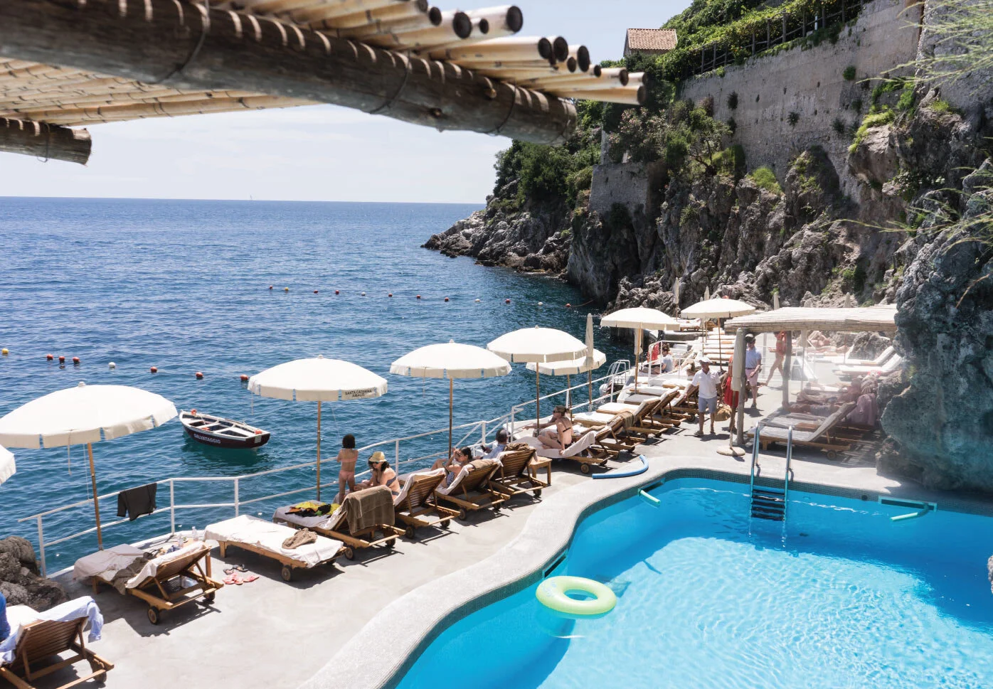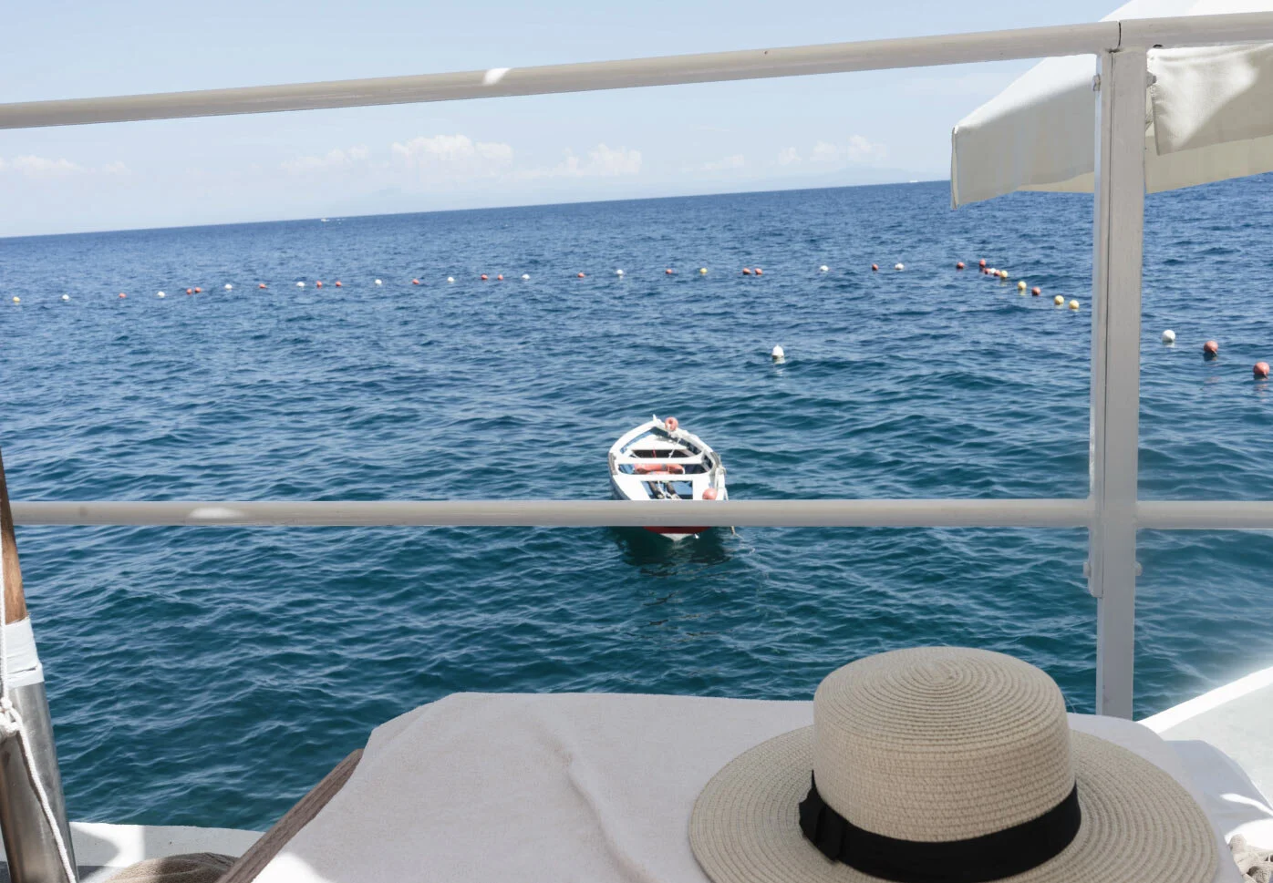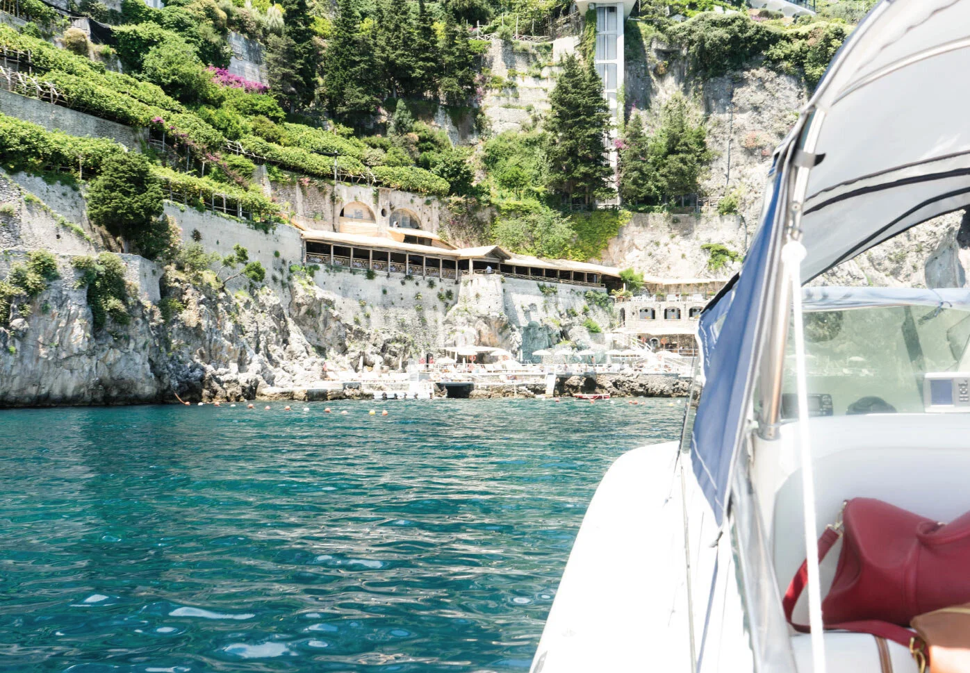 We arrived at Hotel Santa Caterina from Capri. This time we opted for a private boat service from Capri right to the beach club of this hotel. We definitely had a Kim & Kayne moment there! Plus, the views coming in via boat were amazing.