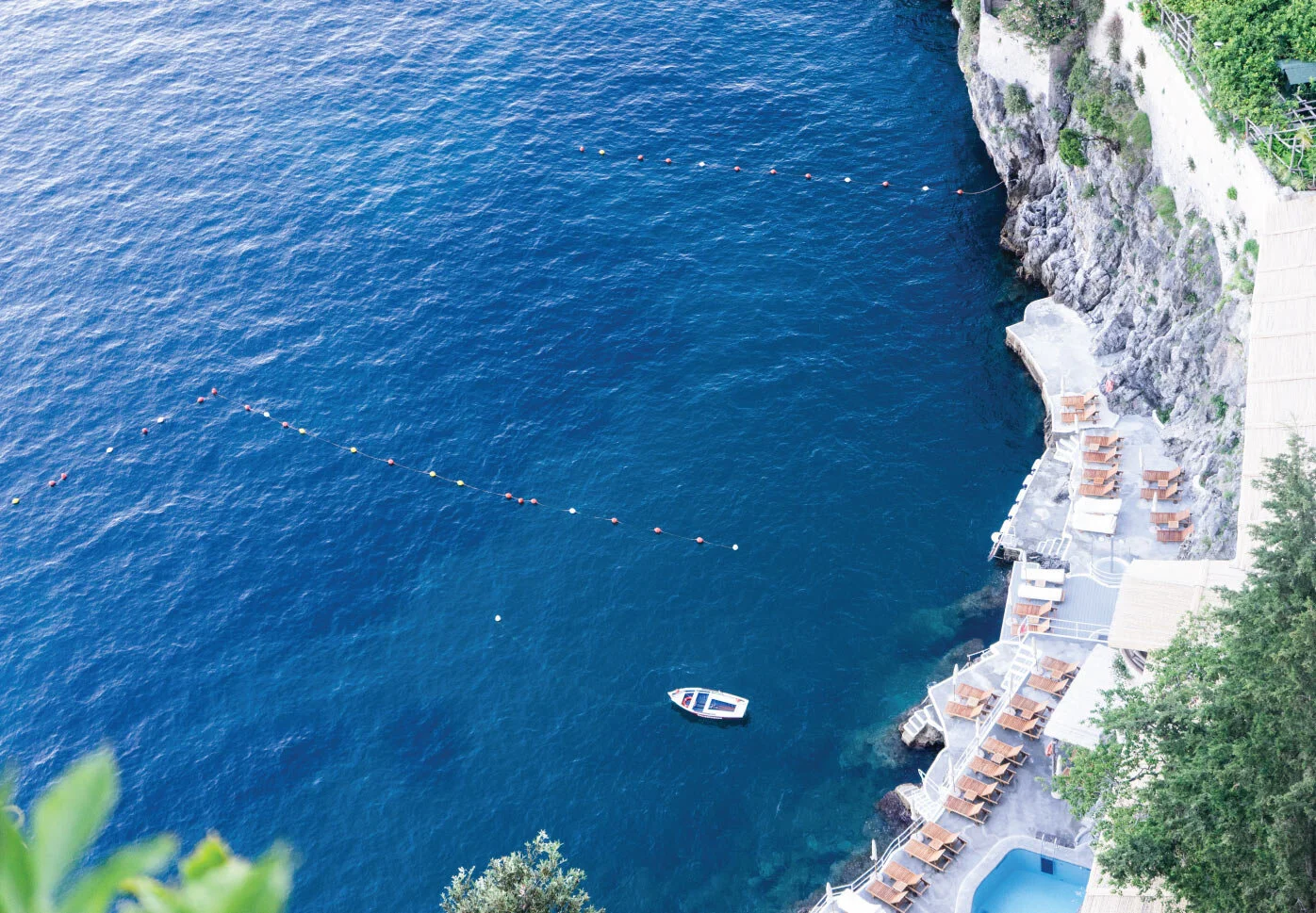 In Amalfi, we stayed at Hotel Santa Caterina, which is everything a hotel should be, and more! I had originally read about this hotel through a destination bride magazine. They featured a beautiful wedding at the most incredible hotel on the Amalfi Coast. I kept the article and put this hotel on my bucket list. This hotel was the real reason that we stayed in Amalfi on our honeymoon and with my family. The moment you step inside, you are surrounded by beautiful light reflecting off of the Mediterranean. The views are spectacular! The hotel is literally built vertically up a cliff. They have a glass elevator that transports you from the top of the cliff to the beach club below.