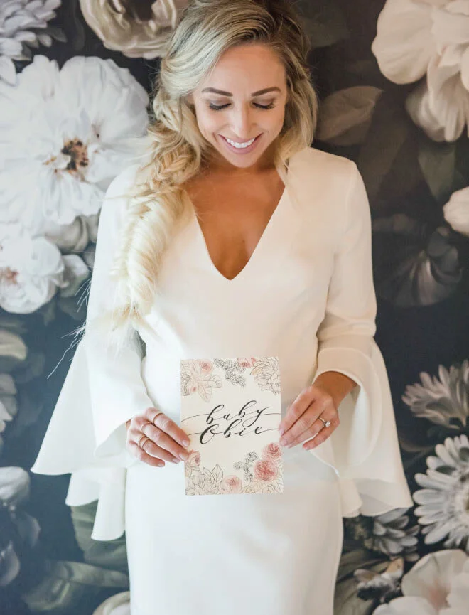 I love beautiful invitations. There is something exciting about opening a beautiful invite, right?! I have been following Tocci Calligraphy on Insta for a while now, and she is so so talented. Her work fit perfectly into our shower theme. She designed the invite with beautiful blush florals, and made them so elegant and beautiful. I cannot thank Tocci Calligraphy enough for the amazing invites. She also created all of the beautiful signs, name cards, and menu cards. It’s all in the details, and Jessica nailed it! A full post on the invitations is coming up next.