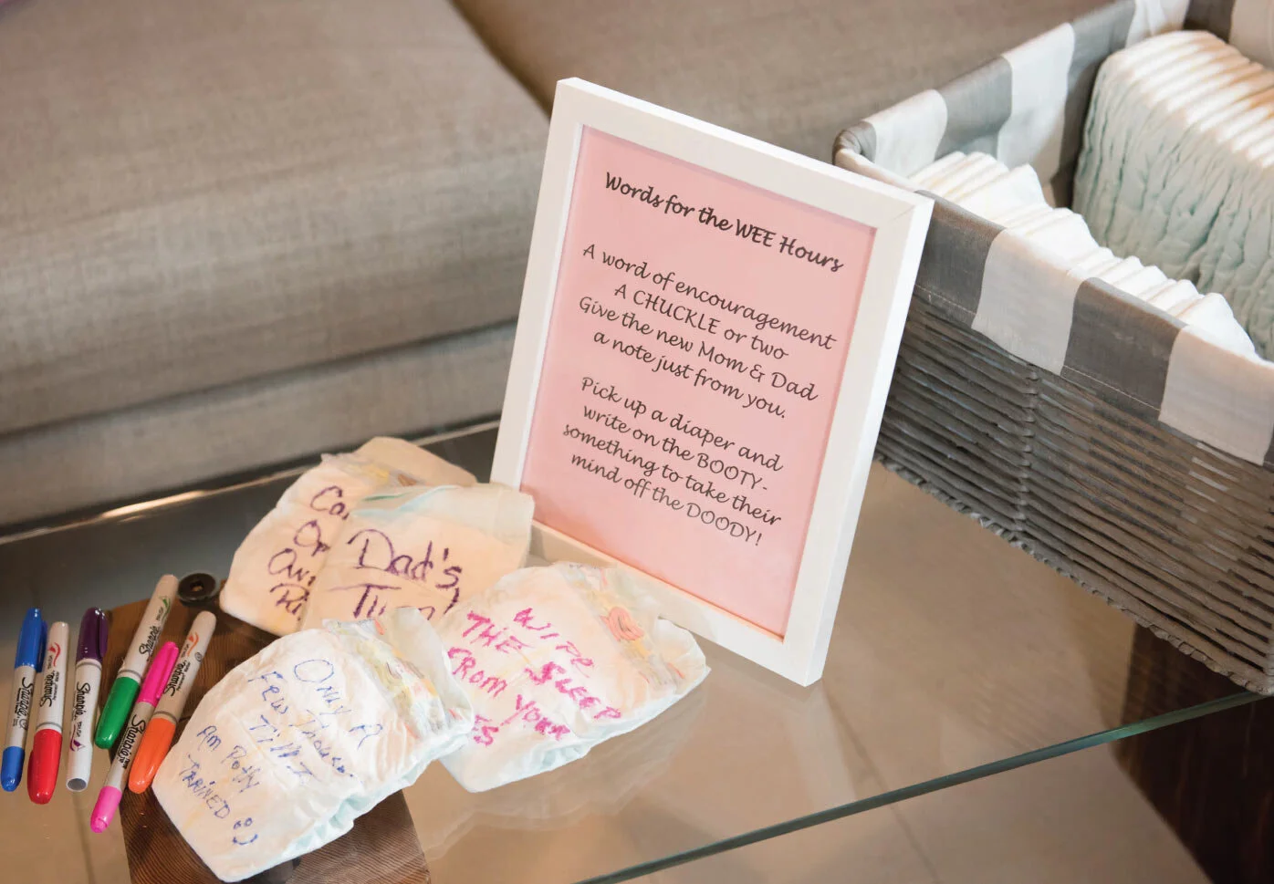 The other so called game was “Words For the Wee Hours.” “A word of encouragement a chuckle or two to give the new mom & dad a note just front you,” written on baby diapers. They are hilarious and I am sure we will get a kick out of them during those late nights. My favorite was “I want my grandma!” haha