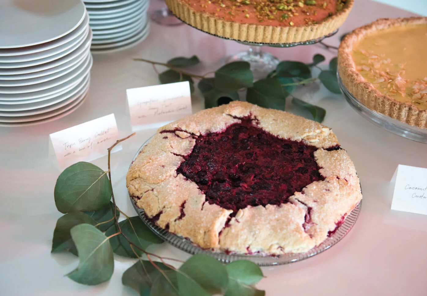 Whipped Confections created the beautiful and delicious desserts. I asked for gluten free and dairy free options, and they were able to meet both requests. The spread consisted of coconut creme brulee tart, grapefruit + lavender + pistachios tart, and a triple berry gallet…my mouth is watering just thinking of them now!