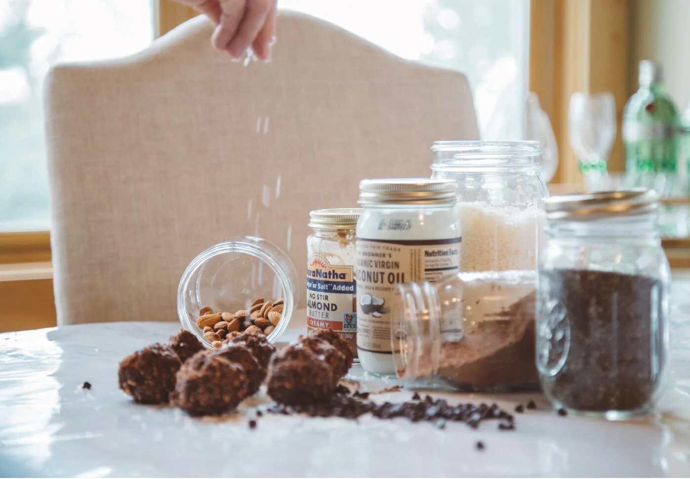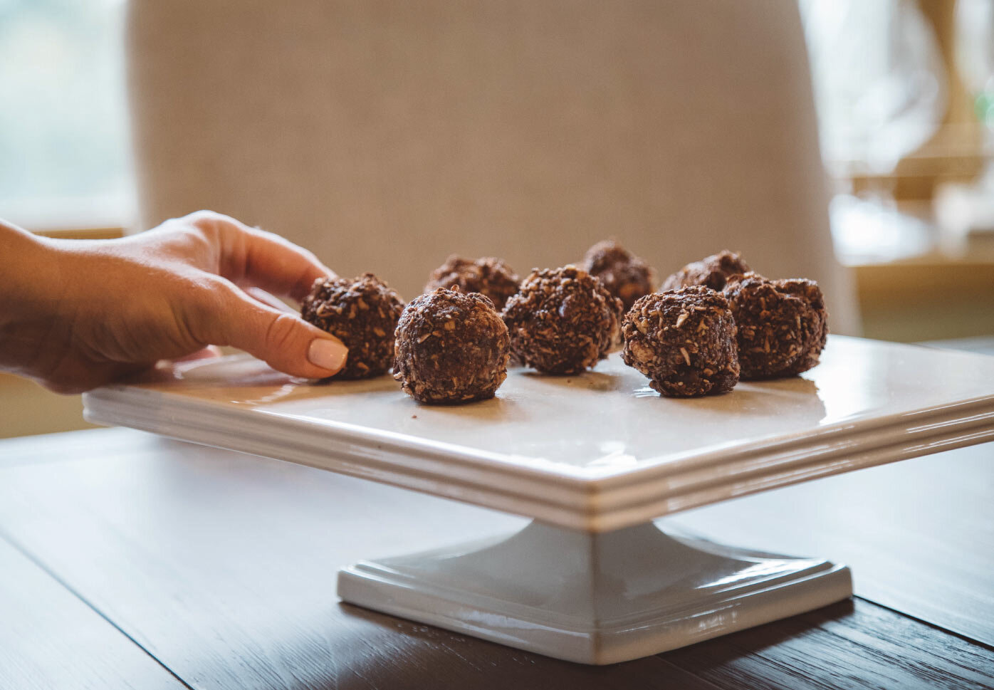 Roll the mixture into balls. Place them in the fridge or freezer to let them set for at least 20 minutes.